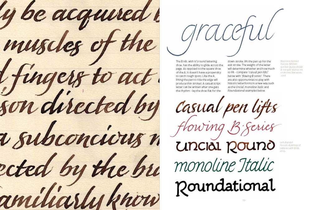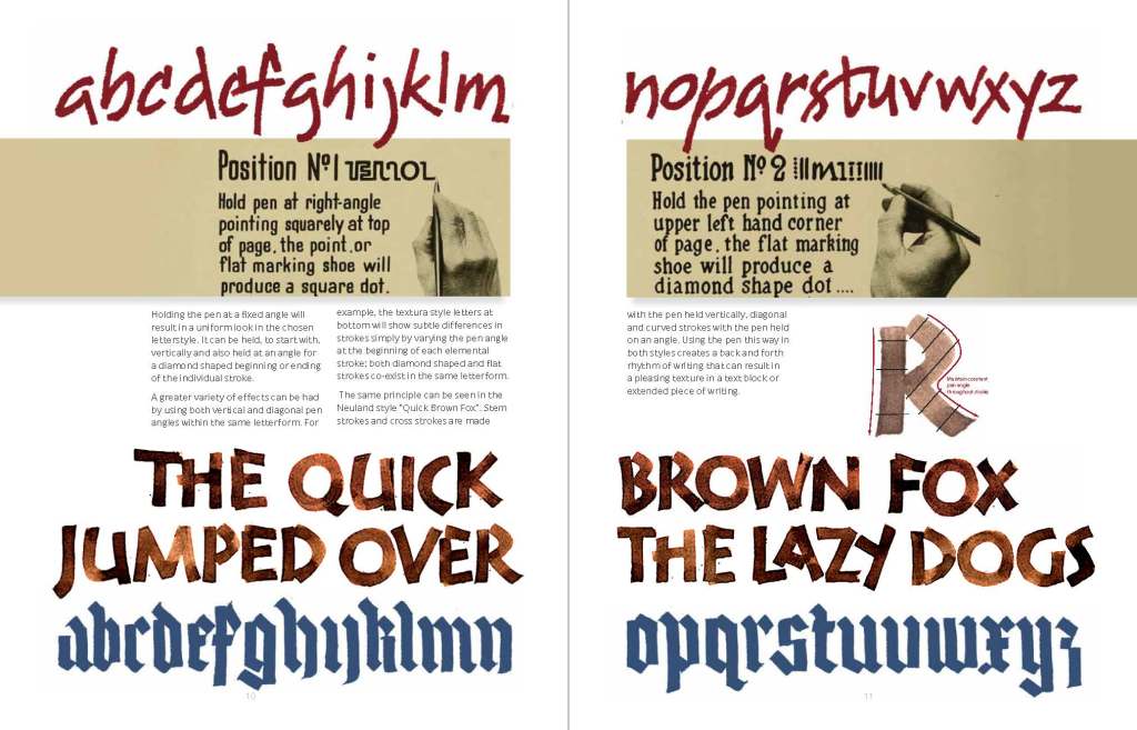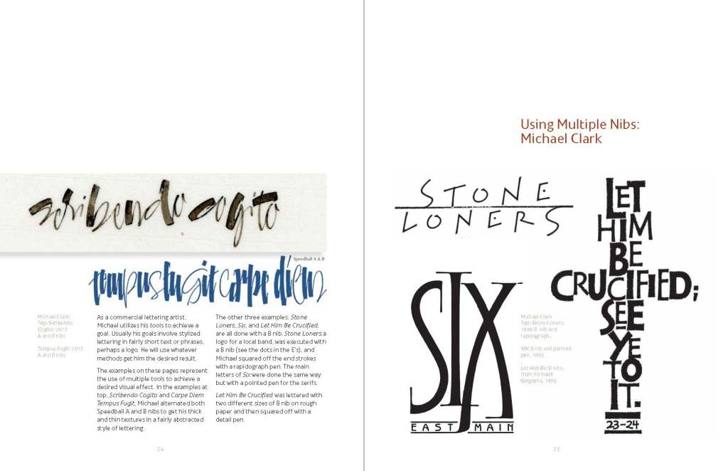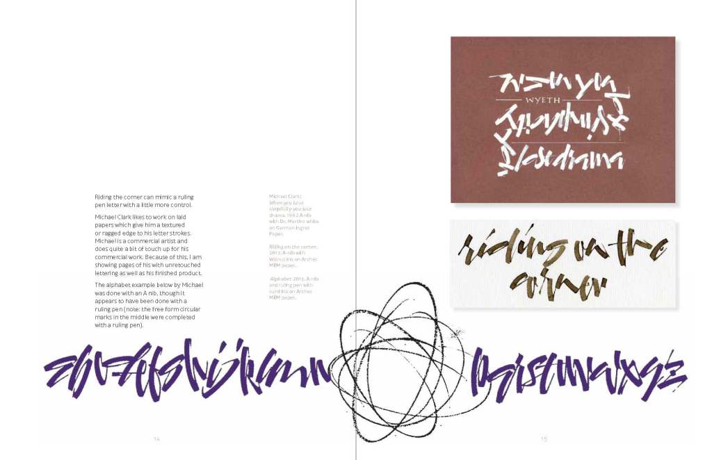 This coil bound Series handout book contains numerous samples and exemplars is from the Contemporary Techniques section of the class series titled Writing with a Bent Nib.