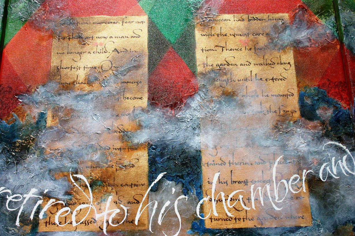 Calligraphic works include works exploring the calligraphic line both on paper and canvas. In addition to the works below, please visit the JOURNALS page to see more informal and experimental work.