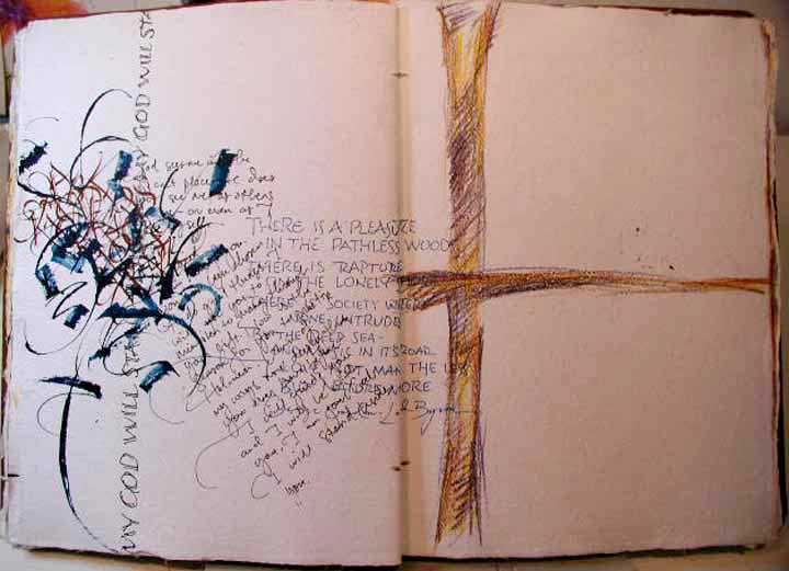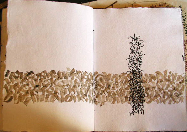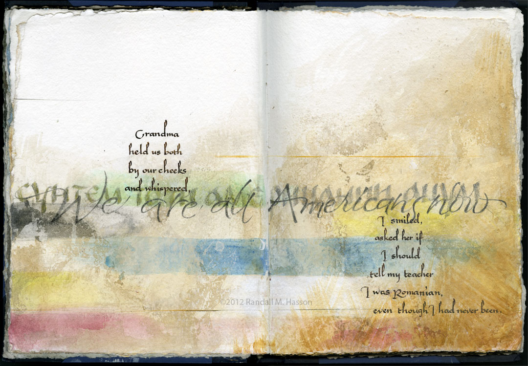 A collaboration of visual and literary art, Visual Artist Randall M. Hasson, and Poet, Chris Baron, have been collaborating on a book called, The Baron Journals. The book visually articulates the spirit of Baron’s poetry by merging it with the disciplines of drawing, painting and calligraphy.