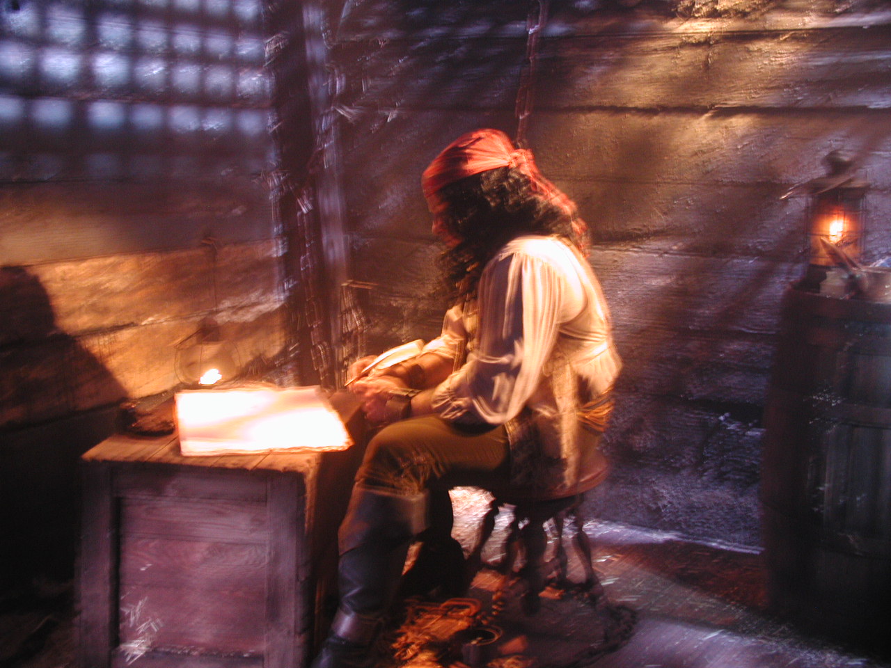 I was contacted by a producer who was in the process of producing “The Pirates of The Caribbean” movie onto DVD. For the DVD version, they were going to add a scene of the captain (who has been taken prisoner and thrown in the brig of his own ship) writing a letter. An internet search for calligraphy eventually led him to my site, and I was contracted to shoot the scene.