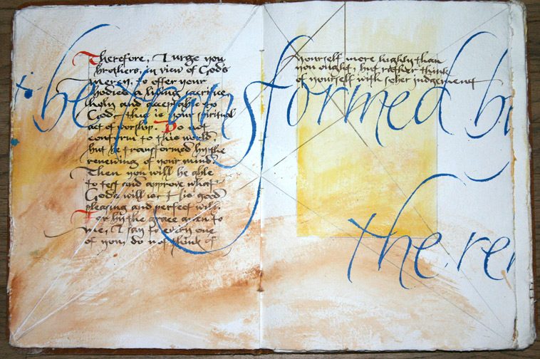 The workshop teaches a calligraphic hand and the principles of medieval page design with techniques for illumination of letters and decoration. Beginning with a look at traditional examples of two illuminated manuscript styles,students will choose one example to study for the workshop. Working with traditional tools, we will commence a study of the chosen letterform and work with the lettering itself to understand and refine forms as the week progresses. An overview of the characteristics of this hand will be discussed including an analysis of form, shape, rhythm of writing and the texture of the text on the page as well as historical context and the evolution of the letter form. As the week progresses, we will discuss the techniques for layout and design of the page and the incorporation of illuminations. Canons of page construction and the design of illuminated letters and decorations will end the week to tie both calligraphy and illumination together.